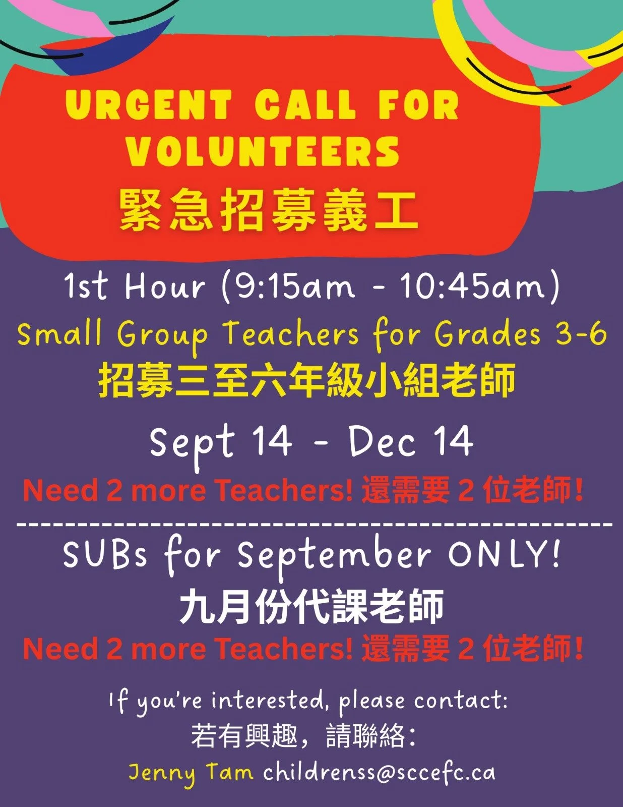 Our children’s ministry is growing and we’re looking for teachers and leaders who love Jesus and enjoy working with kids. If you feel that God is leading you to serve him through teaching, leading small groups or building relationships, contact [email protected]!